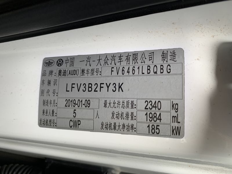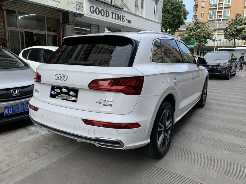 汕头户,2019年8月上牌,白色,7档湿式双离合,适时四驱,全景天窗,8气囊,定速巡航,一键启动,多功能方向盘,换档拨片,卫星导航系统,前排座椅电动调节带加热,电动玻璃车窗,电动后视折叠镜带加热,电动后备厢,皮织混搭座椅,驻车测距,倒车可视,2018款45 TFSI尊享时尚型,年审至2023年8月。