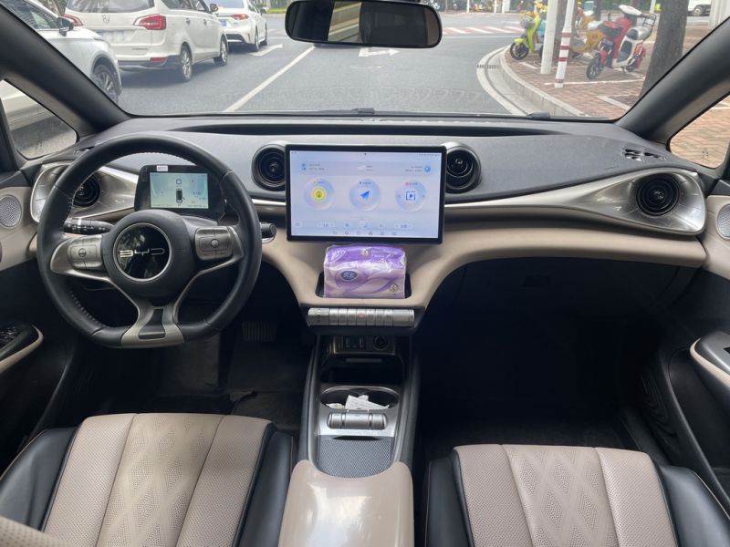汕头户,2023年7月上牌,白色,纯电续航420Km,8气囊,无匙进入,一键、远程启动,定速巡航,触控液晶屏,语音识别控制,多功能方向盘,360全景影像,高德地图卫星导航,驾驶座位电动调节,电动玻璃车窗,电调后视镜,皮座,能量回收系统,倒车雷达,一手车,年审至2027年7月。